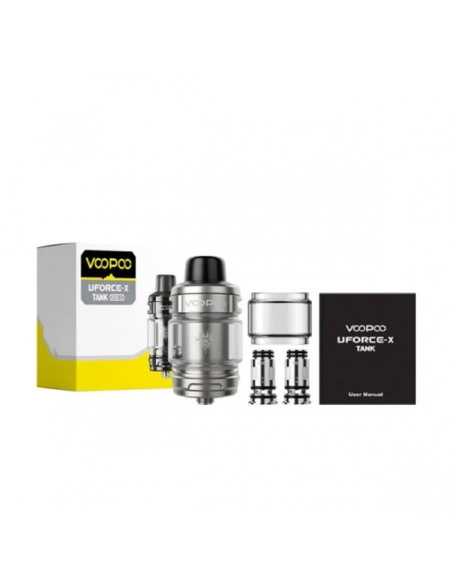 El UForce X Tank es un atomizador de última generación creado por Voopoo, diseñado para ofrecer un vapeo potente, limpio y sin complicaciones. Fabricado en acero inoxidable y vidrio de alta resistencia, cuenta con una capacidad de hasta 5,5 ml de e-líquido en su versión estándar y conexión 510 universal, lo que lo hace compatible con una amplia gama de mods. Su sistema de flujo de aire superior regulable, junto con el uso de resistencias PnP-X, garantiza un equilibrio perfecto entre sabor intenso y producción abundante de vapor, reduciendo al mismo tiempo las fugas no deseadas.